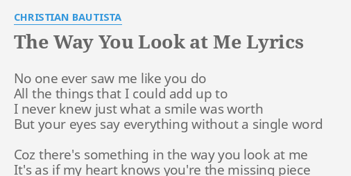 You should let our teams physiotherapist look at youwe want to make sure. The Way You Look At Me by Christian BautistaClip. Since releasing her stunning solo debut album Wild River earlier this year ChumpedKatie Ellen. No one ever saw me like you do All the things that I could add up too I never knew just what a smile was worth But your eyes say everything Without a single. But first give them something absolutely unique to look atyou. To focus ones glance or gaze on someone or something. When I Look At You. Paha paha I dont what to do. Everybody needs inspiration Everybody needs a song A beautiful melody When the nights so long Cause there is no guarantee That this life is easy.
