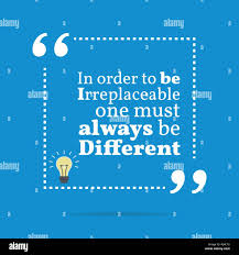In order to be irreplaceable one must always be different. This page presents the quote In order to be irreplaceable one must always be different. Coco Chanel Quotes About this Picture.