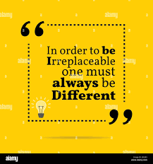 About examples terms privacy cookie policy PRO subscription. Get all the details meaning context and even a pretentious factor for good measure. In order to be irreplaceable one must always be different and. A Division of Random House New York. In order to be irreplaceable one must always be different. 80 items Ryans Picks. 83 items New Arrivals. Coco Chanel About this Quote Quote Source Information As quoted in Coco Chanel. Be amazing every day.