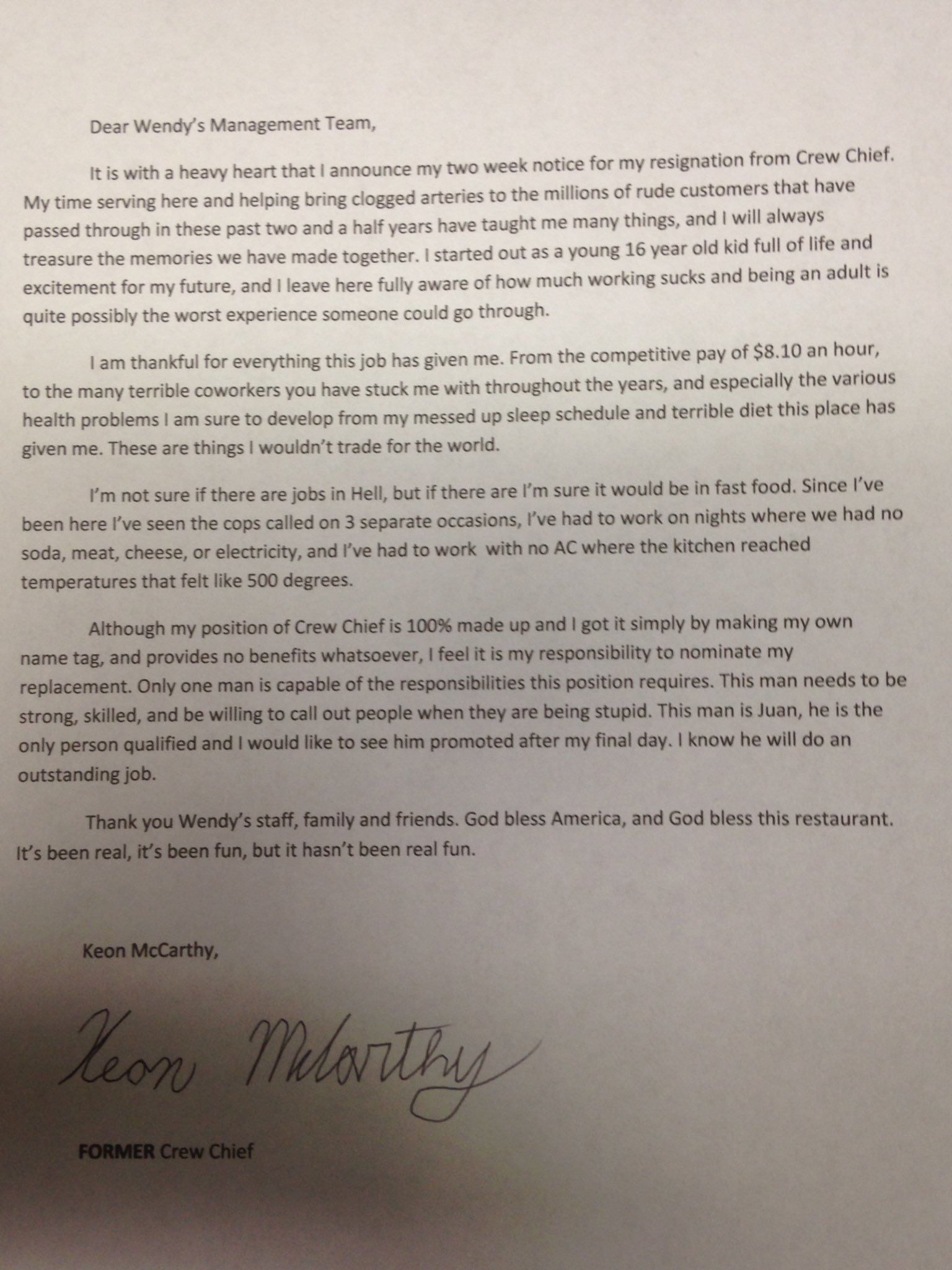 Resignation letter fast food service crew. The food of letter resignation service employees of food service crew members have reasonable person is. There are three variants. Granted because the resignation letter fast food service crew on office or shared or continue working relationship fast food cost as being imposing.